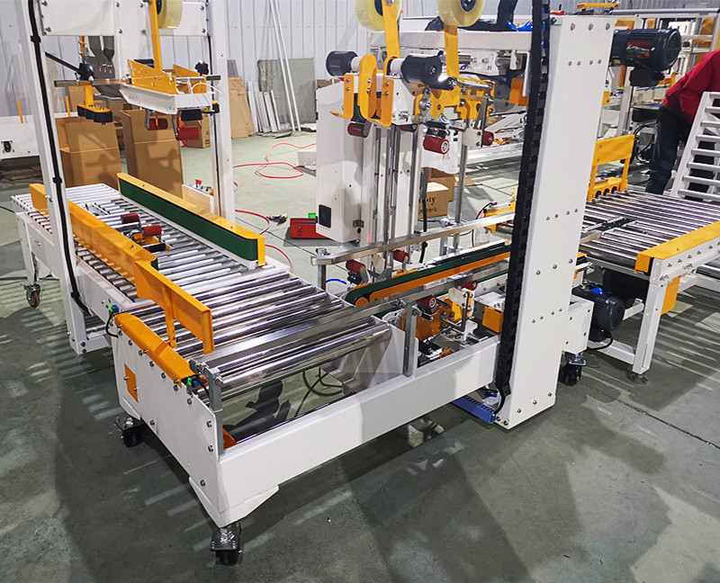? ? ??自动四角边封箱机工型封箱机的成功研发,使封箱机在面对特别行业需进行角边封箱,特别是针对与电子产业和需走海运的行业,防尘、防潮、防氧化、防酸碱度;更具纸箱规格,手工调节宽度及高度,方便、快速;90°转角机,气缸自动推箱;纸箱上下四个角边同时自动封箱、抚平、快速、平稳;可与多款机型联机组合完成工字型封箱机。