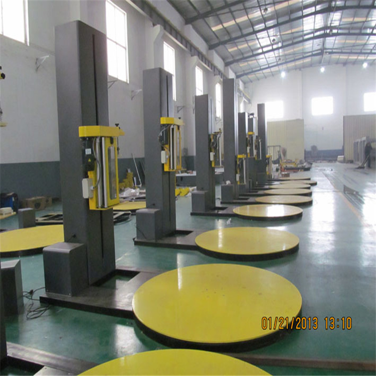 ? 其优点是展膜均匀、包装美观、并且同等条件下比阻拉伸型节 省耗材30~50%P1650F托盘缠绕机(薄膜缠绕机)适用于大宗货物的集装箱运输及散件托盘的包装。能够提高物流效率、 减少运输过程中的损耗,具有防尘、防潮、降低包装成本等优点,是提升产品包装档次的理想选择。