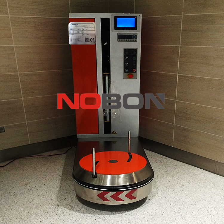? ? 行李缠绕包装机可以移动,行李包装机的操作过程比较简单:操作人员将行李放到转台上,并根据行李的大小来调节垂直杆的位置,从而使行李可以平稳的放在转台上;然后操作人员按操作面板上的启动按钮,行李缠绕机自动进行包装,一般行李包3-5层即可。包装完毕后,操作人员手工切断薄膜,然后取走行李。