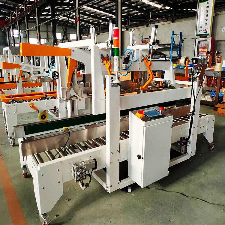 封箱机主要适用于纸箱的封箱包装,既可单机作业,也可与流水线配套使用,它可单箱作业,也可与纸箱成型开箱机、捆包机,打包机,缠绕机等设备配套成包装流水线使用,为包装流水线作业必须的设备。封箱机主要分为:自动拆盖封箱机系列,气动调整封箱机系列,自动封箱机系列,边角式封箱机系列,四角边封箱机,工字型封箱等,封箱方式可分为:上下驱动,左右驱动,侧边,角边等,一般采用透明胶带以及牛皮纸材料。