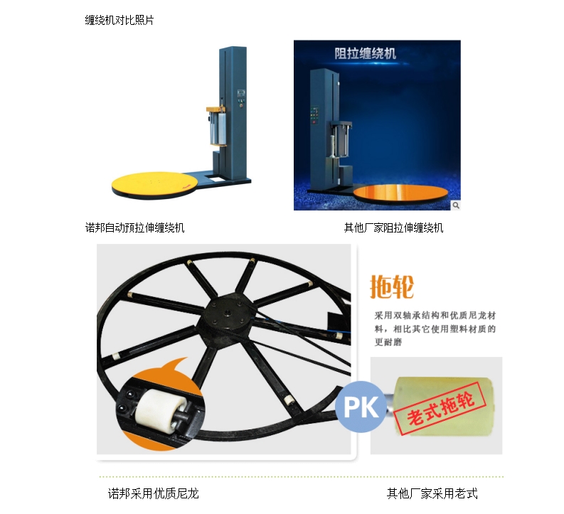 缠绕机的工作原理是将被缠绕物体放置于转盘中央,启动转盘电机转动,自然地带动转盘转动,使物体实现了外围的缠绕。与此同时升降机电机也启动,带动整个组合体做上下运动,达到物体高度方向的缠绕,这就实现了物体整个外表的缠绕包装。为了能更进一步的让用户了解缠绕机性能,选择适合自己公司的缠绕机设备,这里先从结构、功能和内部配置等方面,主要对托盘缠绕机包装设备进行一下简单的对比,希望能对您的设备选型起到作用